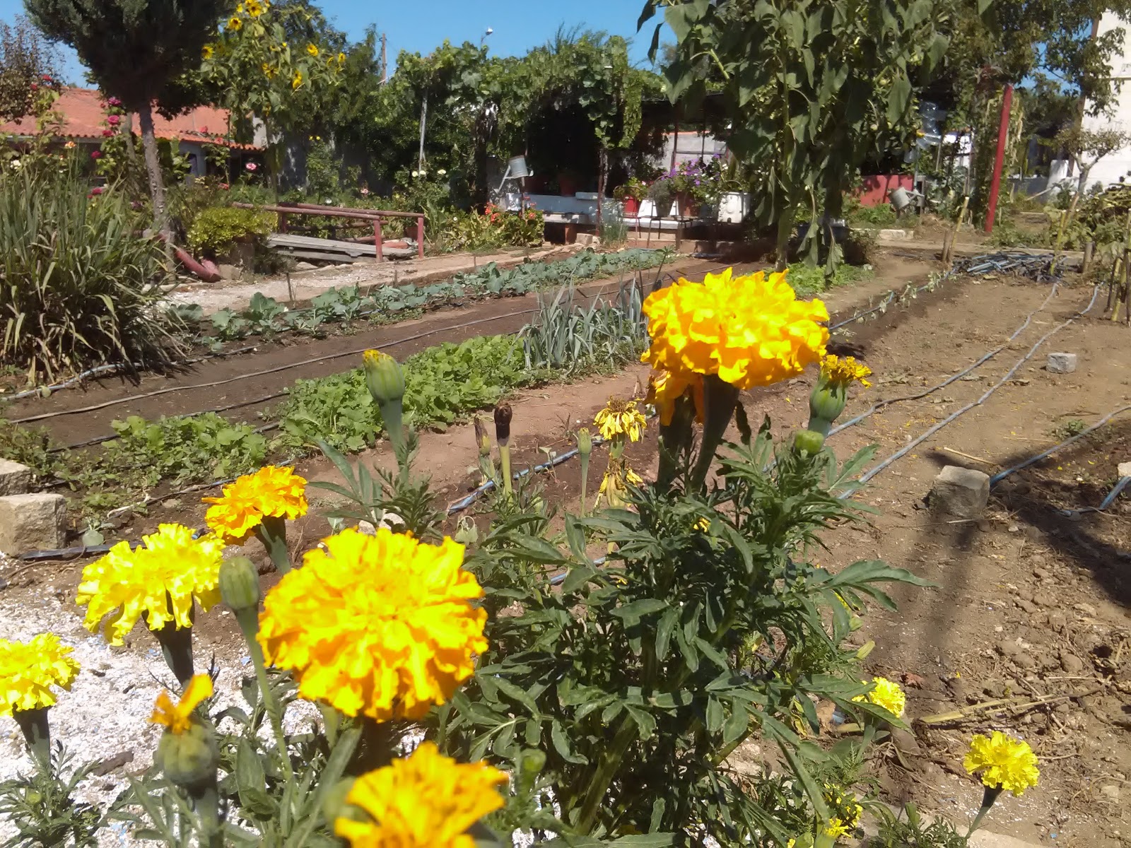Nasceram espontaneamente de sementes que ficaram na terra o ano passado, e agora já produzem pepinos. Tenho por experiência que quando as sementes nascem por si, a produção é maior.